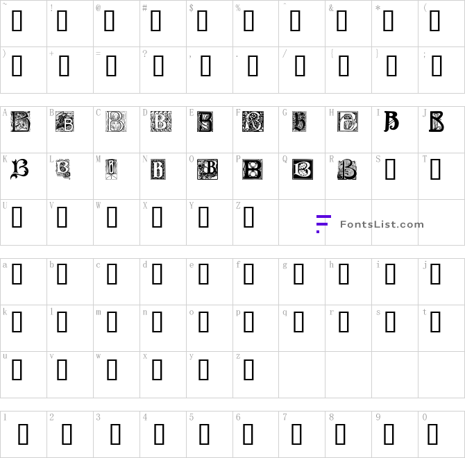 - Subfamily:Macromedia Fontographer 4.1 Art Nouveau Initials B