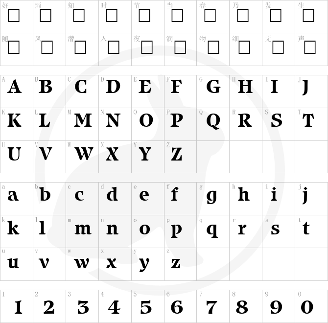 Font Character map