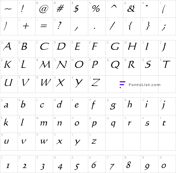 - Subfamily:Altsys Fontographer 4.1 Calli 109 Italic
