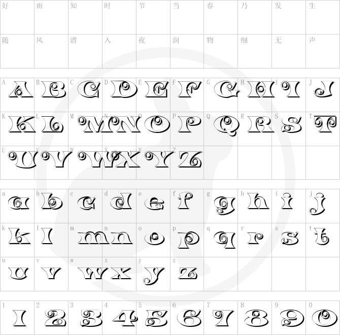 K22-Spiral-Swash-Shadow.ttf is a very beautiful artistic font, K22-Spiral-Swash-Shadow.ttf is widely used in the design and printing of various books and pictures,K22-Spiral-Swash-Shadow.ttf has a strong visual impact,K22-Spiral-Swash-Shadow.ttf is a commonly used font in newspapers, magazines and books, and is used in posters, e-commerce Poster design, store design, logo design, font design and other fields.K22-Spiral-Swash-Shadow.