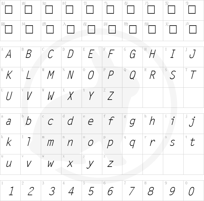 QTLetterGoth-Italic.ttf is a very beautiful artistic font, QTLetterGoth-Italic.ttf is widely used in the design and printing of various books and pictures,QTLetterGoth-Italic.ttf has a strong visual impact,QTLetterGoth-Italic.ttf is a commonly used font in newspapers, magazines and books, and is used in posters, e-commerce Poster design, store design, logo design, font design and other fields.QTLetterGoth-Italic.