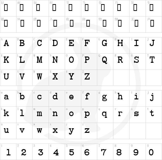 Font Character map