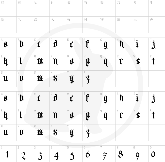 Font Character map