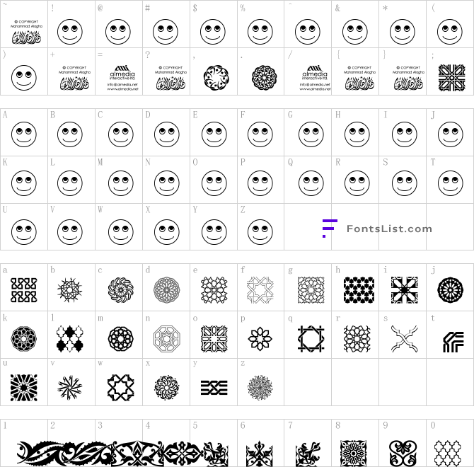 - Copyright:This font was developed by Mohammad Alagha. Copyright 2005. Almedia Interactive Limited. www.almedia.net info@almedia.net