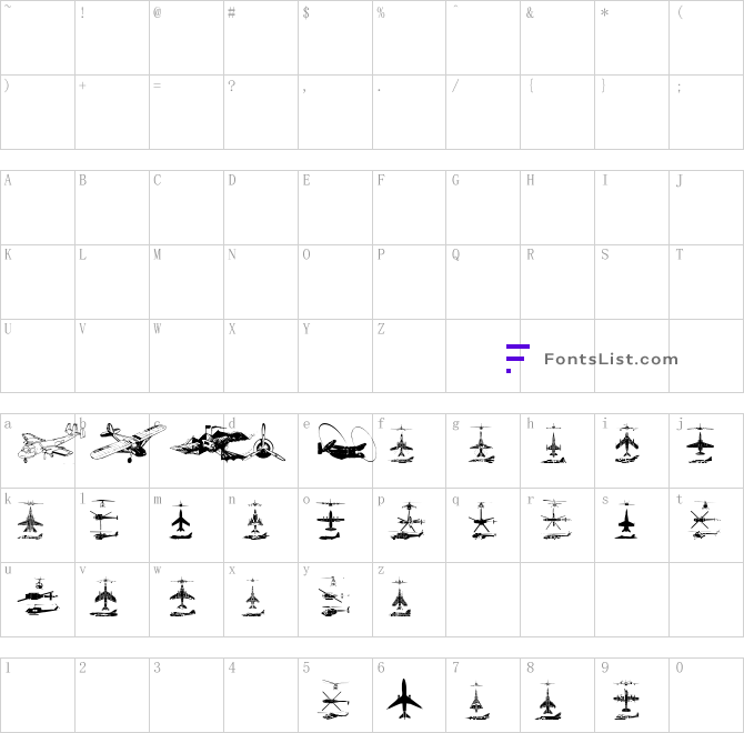 Aircraft2.ttf is a very beautiful artistic font, Aircraft2.ttf is widely used in the design and printing of various books and pictures,Aircraft2.ttf has a strong visual impact,Aircraft2.ttf is a commonly used font in newspapers, magazines and books, and is used in posters, e-commerce Poster design, store design, logo design, font design and other fields.Aircraft2.