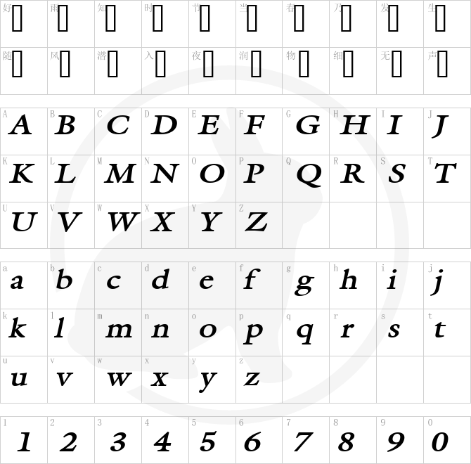 Galant-Wide-BoldItalic.ttf is a very beautiful artistic font, Galant-Wide-BoldItalic.ttf is widely used in the design and printing of various books and pictures,Galant-Wide-BoldItalic.ttf has a strong visual impact,Galant-Wide-BoldItalic.ttf is a commonly used font in newspapers, magazines and books, and is used in posters, e-commerce Poster design, store design, logo design, font design and other fields.Galant-Wide-BoldItalic.