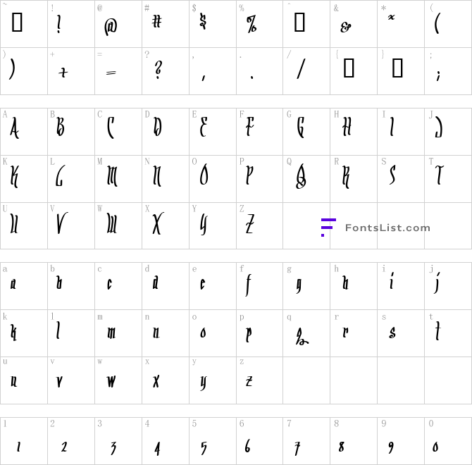 Font Character map