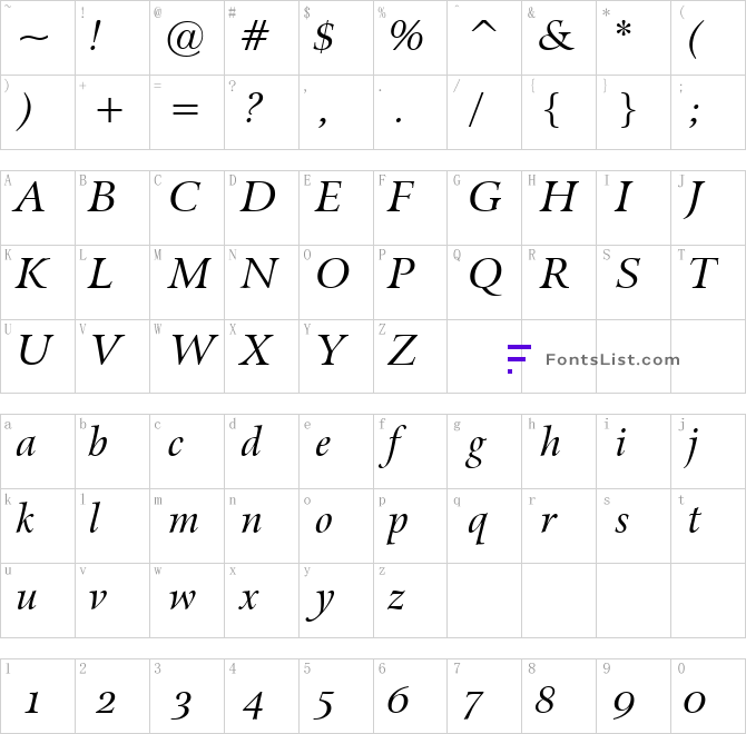- Subfamily:Bitstream Arrus Italic OSF, Lapidary 721