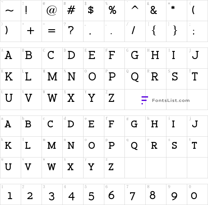 Font Character map