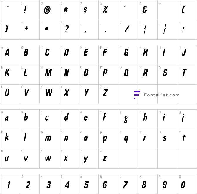 - Subfamily:Macromedia Fontographer 4.1 CallimarkerCondensed Italic