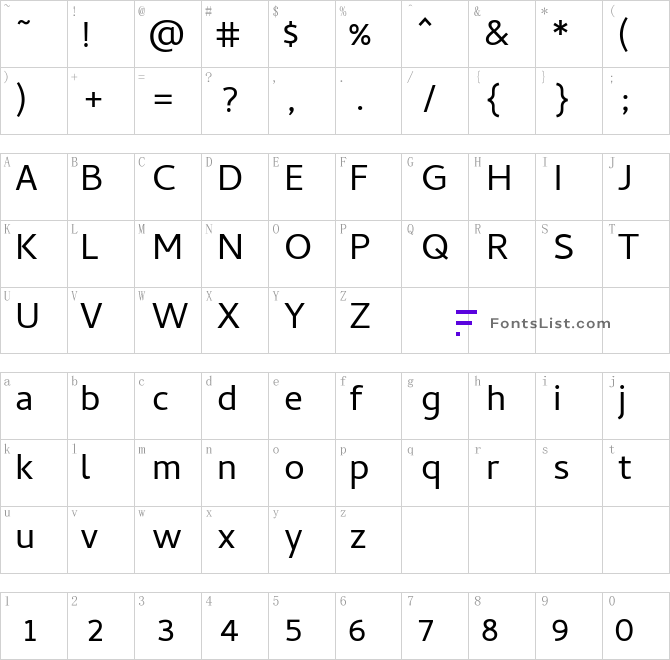 Font Character map