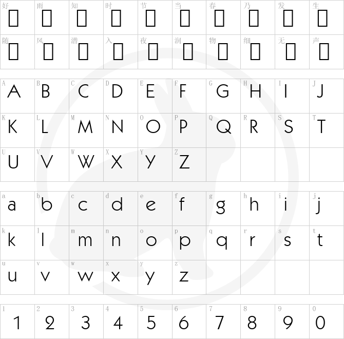 Font Character map