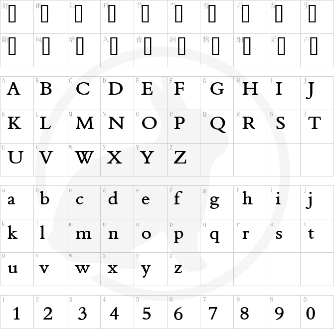 Font Character map