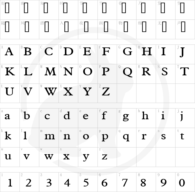 Font Character map