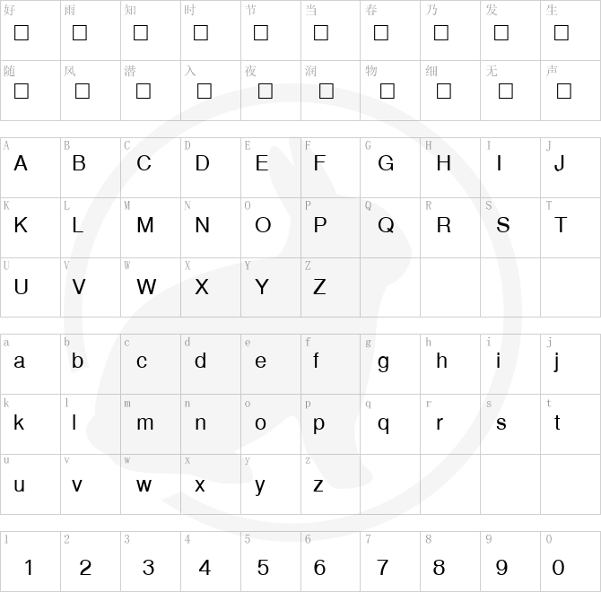 Font Character map