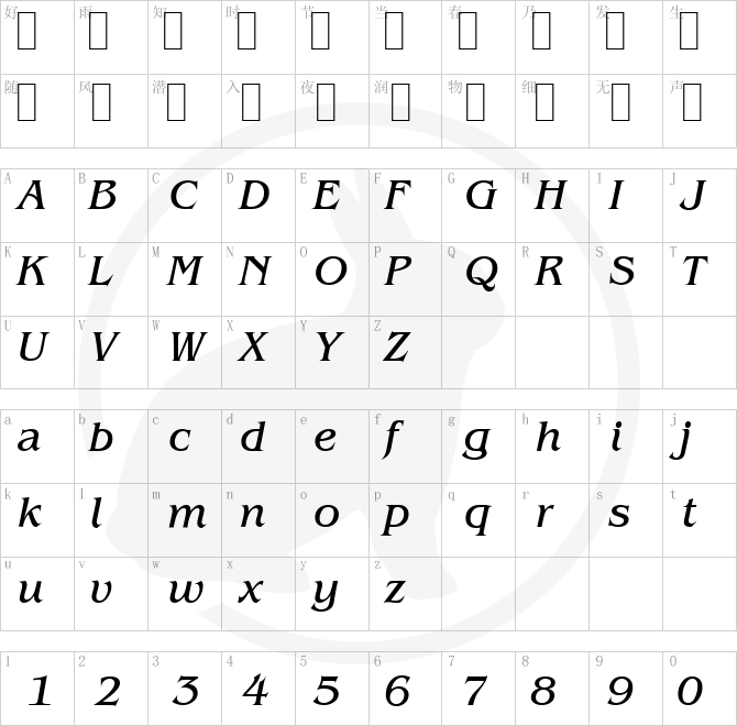 B693-Roman-Italic.ttf is a very beautiful artistic font, B693-Roman-Italic.ttf is widely used in the design and printing of various books and pictures,B693-Roman-Italic.ttf has a strong visual impact,B693-Roman-Italic.ttf is a commonly used font in newspapers, magazines and books, and is used in posters, e-commerce Poster design, store design, logo design, font design and other fields.B693-Roman-Italic.
