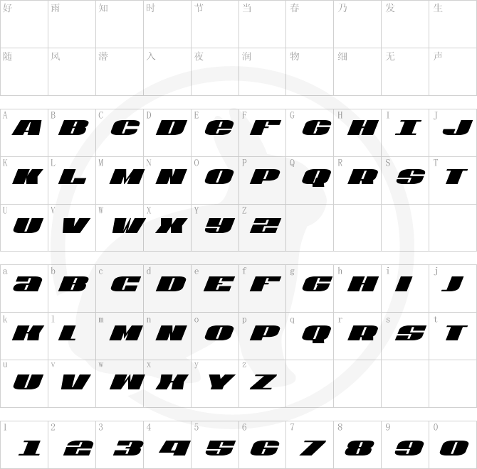 - Subfamily:Extra-Condensed Italic