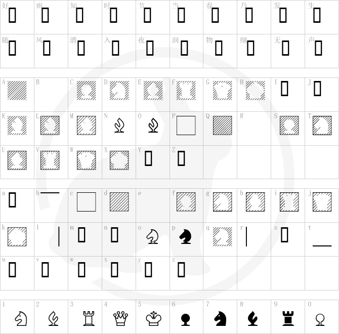 XChessNut.ttf is a very beautiful artistic font, XChessNut.ttf is widely used in the design and printing of various books and pictures,XChessNut.ttf has a strong visual impact,XChessNut.ttf is a commonly used font in newspapers, magazines and books, and is used in posters, e-commerce Poster design, store design, logo design, font design and other fields.XChessNut.