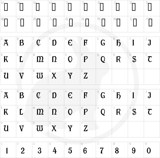 Font Character map