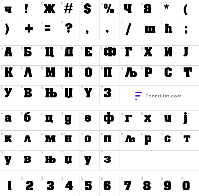 - Subfamily:FontMonger:Aardvark Cirilica Bold