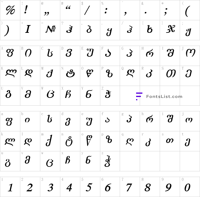 - Copyright:Copyright (c) Alexander & Temuri Imnaishvili. Tel. 38-35-55. Tbilisi. 7-Feb-1994. Please do not make illegal copies of this font! Call us for new developments.