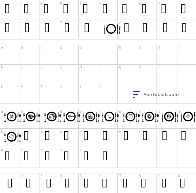 AL-Place-Settings-Dings.ttf is a very beautiful artistic font, AL-Place-Settings-Dings.ttf is widely used in the design and printing of various books and pictures,AL-Place-Settings-Dings.ttf has a strong visual impact,AL-Place-Settings-Dings.ttf is a commonly used font in newspapers, magazines and books, and is used in posters, e-commerce Poster design, store design, logo design, font design and other fields.AL-Place-Settings-Dings.